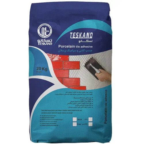 چسب کاشی سرامیک پرسلان الیافدار و پودری برند تسکانو دارای استانداردCb 17